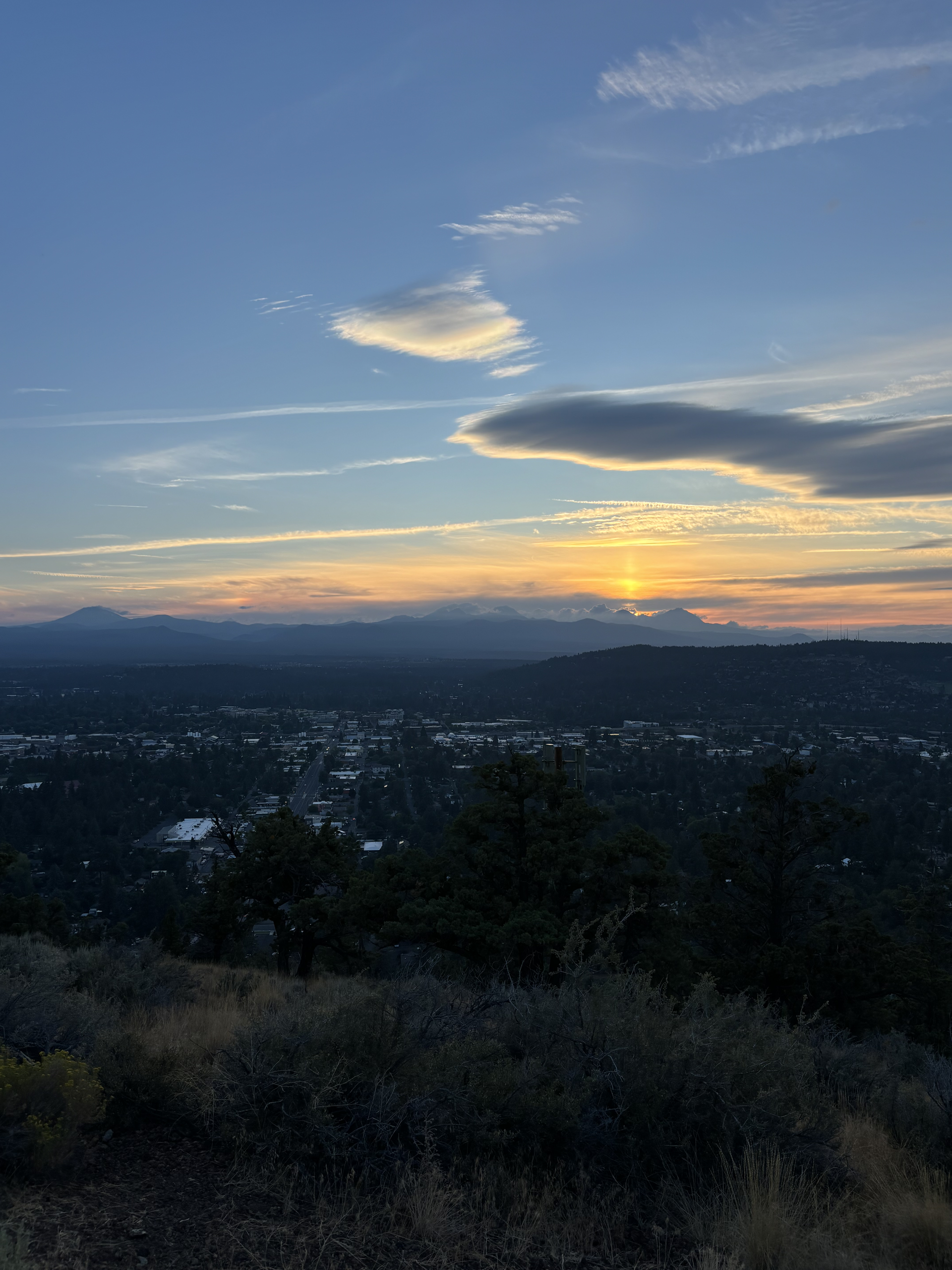 It’s with this backdrop we flash forward again to 2024. On our travel north from the California redwoods to the Oregon pines, we skirted the Park fire in northern California (the fifth largest in California’s modern history). We stopped in Redding and saw a number of firefighters passing through, staying at our hotel to help with the nearby fire. We continued on past Mt. Shasta (and the portal-IYKYK), past Klamath Falls, and on to the winding Deschutes River. As we drove through the pines, the skies were thick with smoke coming from the west. It felt like there were fires everywhere around us. We started to unload and take in our new abode for the month, near Tumalo in the north part of Bend. Two days later, another spark took light 2 miles away from us. We could see the smoke plume and we monitored the FireWatch app to see if we’d just have to pack up and go after all. Fortunately, as time passed and water bombers passed directly above our heads, the summer heat dissipated, rain came, and the fire was contained. We could finally breathe a sigh of relief and actually settle in!
