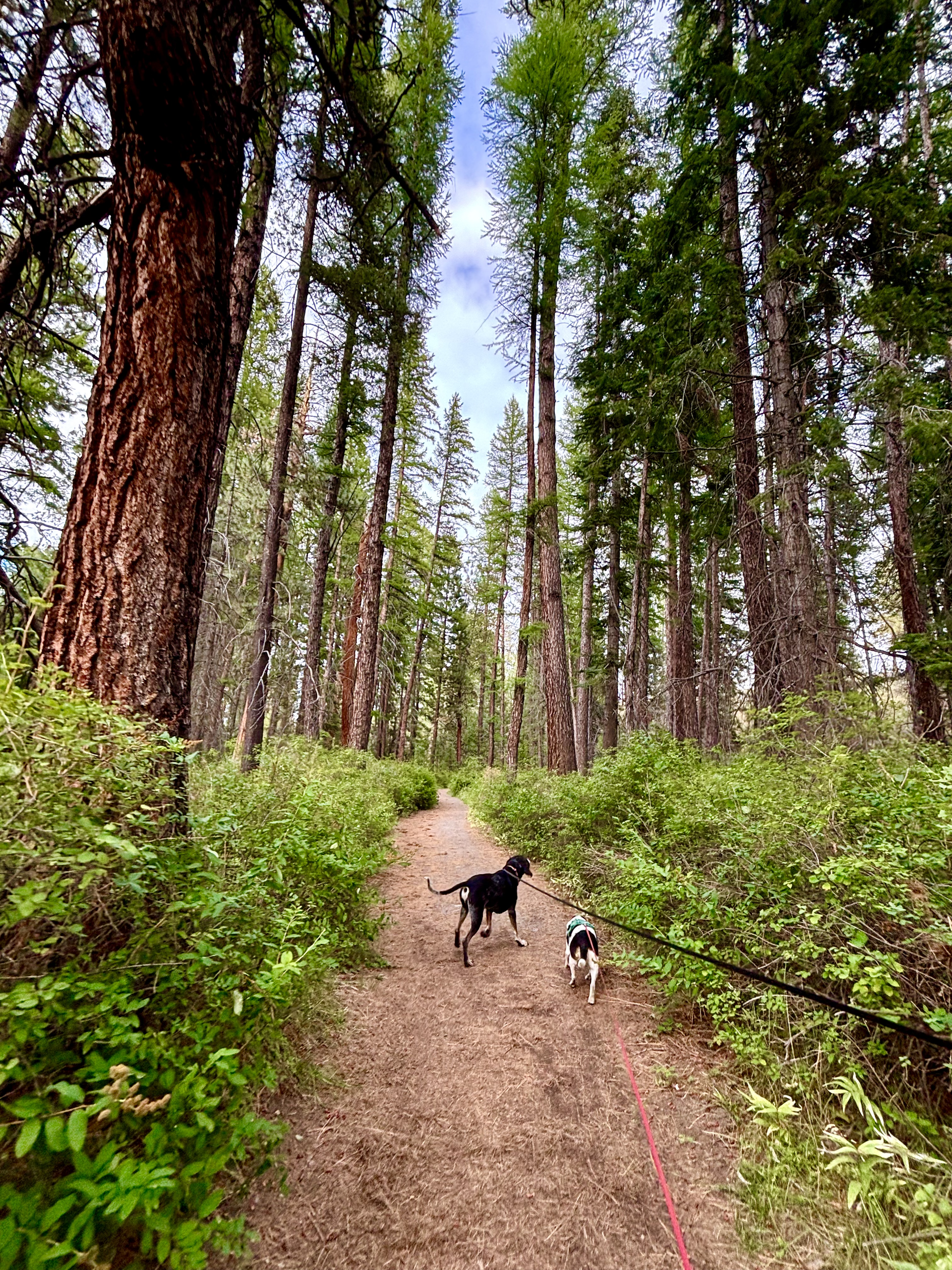 - Cascade Lakes Scenic Byway (a 66-mile long stretch connecting many small lakes in the region. We made a couple of stops on this before Copper’s pain due to his nail issue had us turning back home :/).