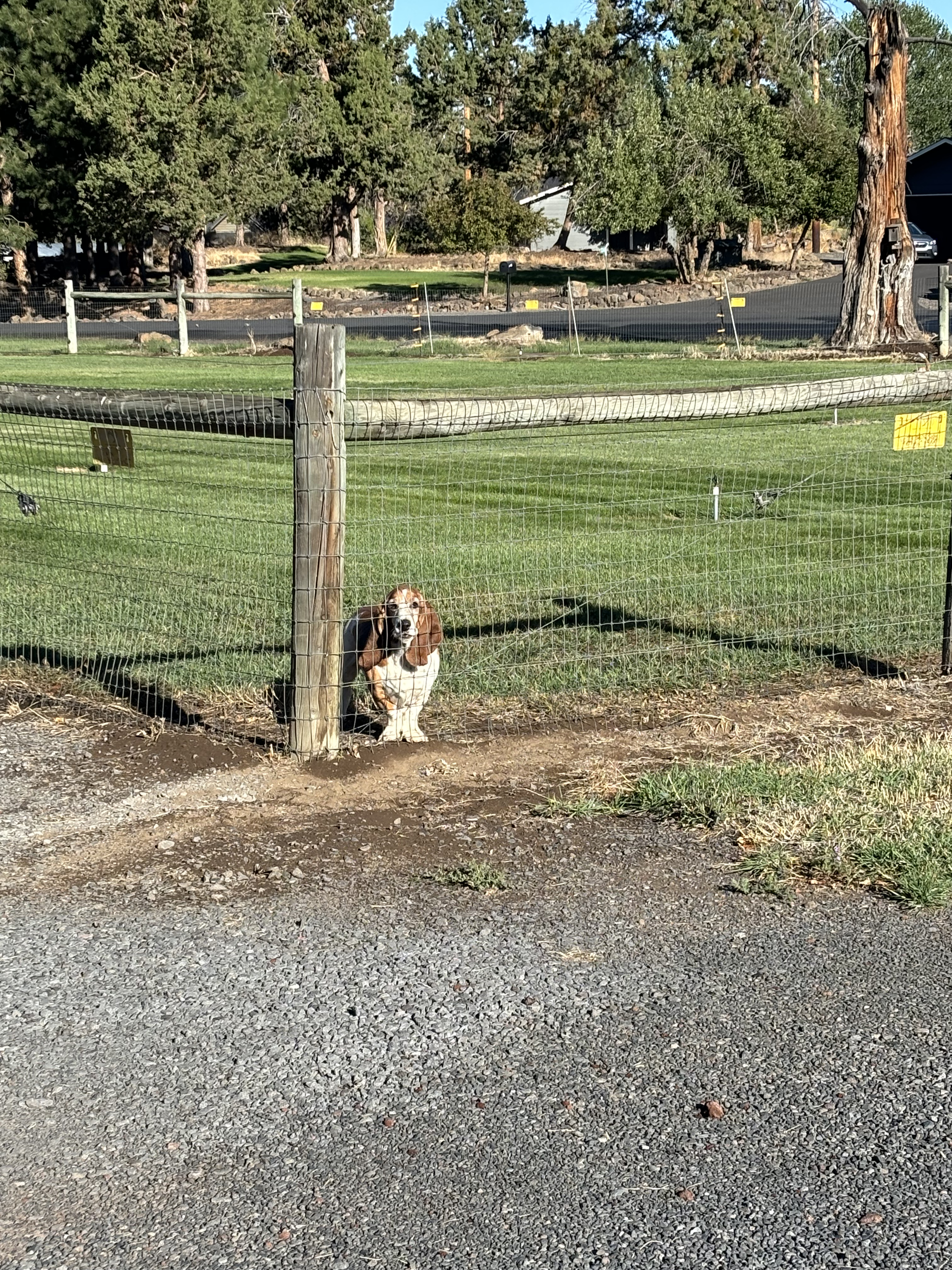 You’d think that’s where the Copper stories end, but no. We soon discovered the source of the pure passion he displayed at his job. As I worked my own job, sitting in the office overlooking the front entrance through the window, I’m sitting on a Zoom call - as I do - and trying to be professional, when I look up and see a huge rack, sitting atop a giant mule deer. This deer works his way along the fence and beside my Jeep, about 50 yards through the window. I continue to attempt to focus when he hops the fence and beds down under an apple tree, possibly 20-30 yards from me through the window. This became a common occurrence, sometimes just the one, but other times there were 3 or 4 of them. Over the course of our stay, the deer would pass through, drop some scents, and Copper would diligently analyze every inch of yard. As we closed out our time in Bend, there was an epic climax to this plot line. Picture Copper out in the yard, 20 yards away from a mule deer, barking his head off. The deer bowing his head and all 12 points of his antlers towards him. Annie is running towards him with pinecones, and I’m running towards the deer looking for a rock. We finally startled him off, but this deer was territorial.