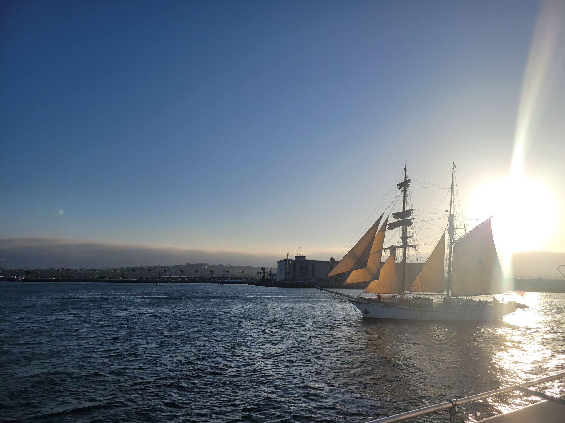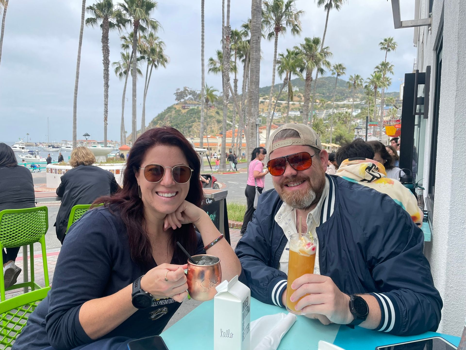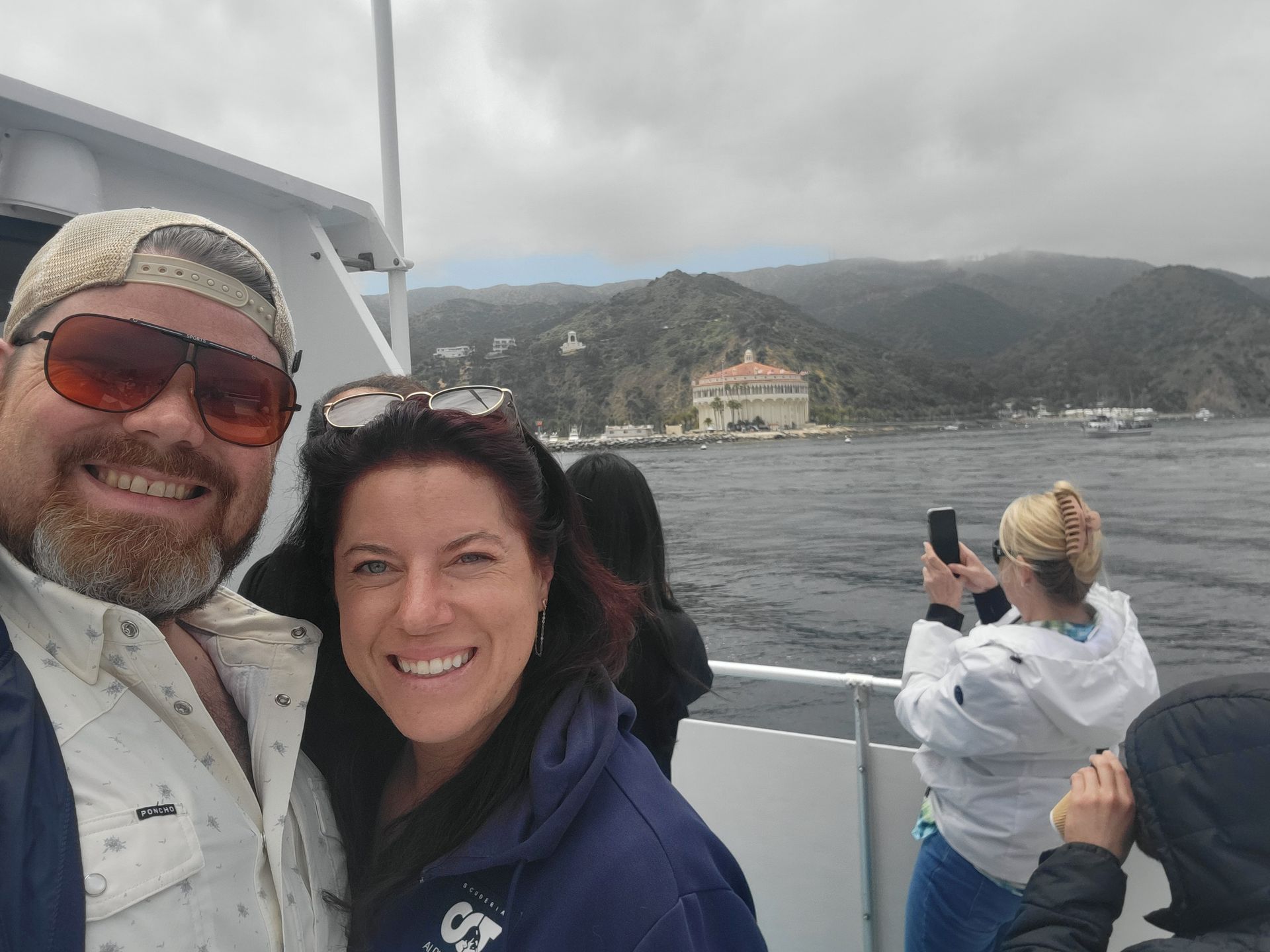 Next up was Catalina. We got a ferry to take us across from San Pedro pier to the island we’ve been gazing at across the water since we arrived. I recall Catalina from college and it was also popularized by the “Catalina Wine Mixer” in the movie Step Brothers. We found that they did create an event based on the movie (it did not previously exist, to our surprise), but we were just a week or so shy from the event. We met up with a local GitLabber (a coworker of mine and a member of my team, woo!). It was awesome being able to take advantage of my travels and meet up with someone from the team and get off of Zoom meetings. Alexander met us at our place, we got to the ferry and made our way to the island. The water was very choppy - we tried standing at times and taking pictures but we definitely had to sit down until the water smoothed out.